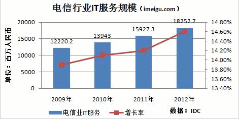 據(jù)IDC統(tǒng)計(jì),中國(guó)電信(CHA,51.08,+0.79%)行業(yè)IT規(guī)模從2009年的122億元增長(zhǎng)到2012年的182億元;復(fù)合增長(zhǎng)率14.5%。