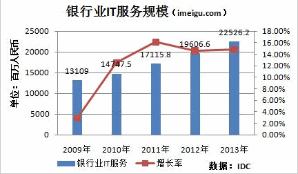IDC的統(tǒng)計(jì)數(shù)據(jù)還顯示,銀行業(yè)IT服務(wù)市場(chǎng)規(guī)模將從2009年的131億元增長(zhǎng)到225億元;實(shí)現(xiàn)14.5%的復(fù)合增長(zhǎng)。